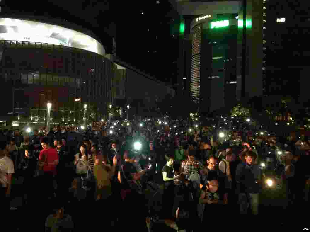 在香港泛民和占中运动在特区政府总部外的添马公园举行的有近万人集会后,数以百计的学生和市民游行前往人大常委会副秘书长李飞下榻的湾仔君悦酒店,要求与李飞对话,抗议人大常委会对香港政改全面落闸......以下是美国之音记者海彦从现场拍摄的照片。