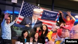 选举夜即景:支持特朗普总统的越南裔美国人在德克萨斯州休斯顿一个观看选举结果的派对上。
