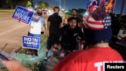 选举日即景:美国德克萨斯州休斯顿一投票站外,拜登的支持者与特朗普的支持者发生对峙。