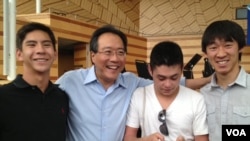 采访到了马友友! 今天的重头戏是马友友和一些艺术家讨论如何让艺术提升你的人生。 舞台上的马友友总是风采迷人,近距离交谈, 更是亲切,诙谐, 大气。 这是他在和年轻粉丝合影。
