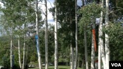 这是阿斯彭随处可见的景观,也是阿斯彭地名的来源--白杨树。 树上的疤痕,恰似深思凝视的眼睛。这几棵阿斯彭就伫立在思想节会场中心。