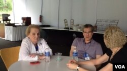 #阿斯彭思想节 在餐厅巧遇前国务卿奥尔布赖特(Madeleine Albright)和人聊天,不顾人家隐私照了一张。