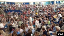正在等待今天的重头戏--下午对话。参加对话的名人包括众议院多数党领袖共和党众议员艾瑞克.坎特尔,美国前财政部长保尔森,美国最高法院大法官埃琳娜.凯根以及美国电视名人凯蒂.库瑞克等。看看有多少观众吧。