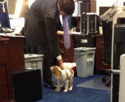 来到佛罗里达州共和党众议员罗斯的办公室首先吸引眼球的是这只可爱的小狗。