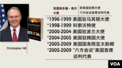 希尔大使:我觉得六方会谈的国家都起到了不同的作用。美国与韩国是非常活跃的两方,提出了很多提案,希望取得进展。中国也是非常努力的试图修改一些草案,把修改好的草案提供给各方。所以不同的各方都做了很多不同的努力。最后,朝鲜很勉强的同意了,但是我们需要有一个验证的机制。每一个核武国都要有这样一个验证机制,但是朝鲜没有提供足够的验证机制的安排。在2005年9月我们达成了一致意见,但是最后没有执行,因为朝鲜拒绝了我们提供的验证机制。